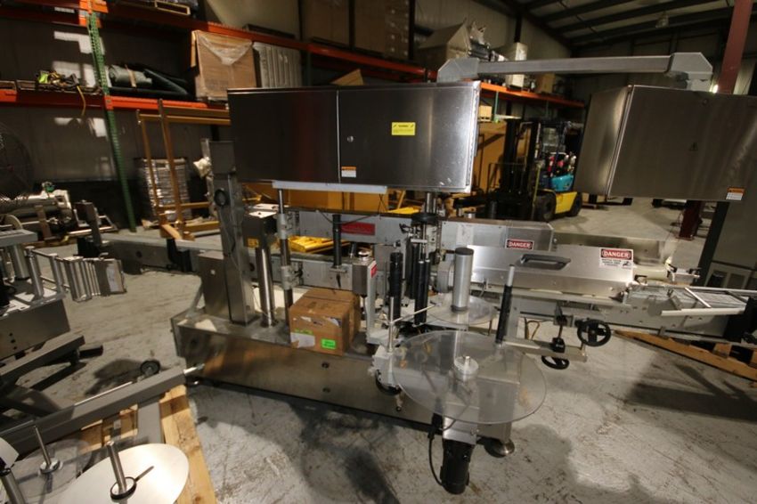 Accraply In-Line Labeler, Model 9000 PW, SN 4262, with 4.5" W Conveyor, SP10 Head, Allen Bradley Micrologix 1400 PLC Controller with Touch Pad Display, 230V 3 Phase, (Aprox. Overall Dim. 17' L x 8' W x 80" H)(INV#78680)(Located @ the MDG Auction Showroom in Pittsburgh, PA)(Rigging, Loading & Site Management Fee: $250.00 USD)