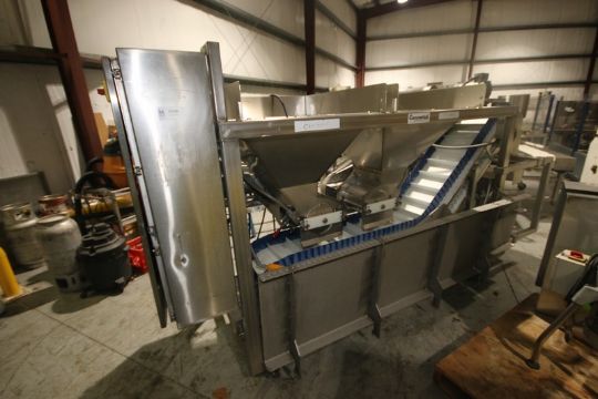 Commercial S/S Chips/Chunk Feeder Conveyor,S/N MU120310604, Job No.: 10604, with Flighted Conveyor, with Control Panel with (2) Allen-Bradley PowerFlex 40s & (1) Allen-Bradley PowerFlex 4 VFDs, Mounted on S/S Frame(INV#75129) (Located @ the MDG Auction Showroom in Pittsburgh, PA)(Rigging, Loading & Site Management Fee: $300.00 USD)