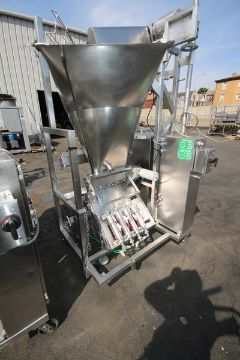 Raque S/S 4-Piston Filler,M/N PF2.5-4, S/N 1000164, with Hopper, 460 Volts, 3 Phase, Mounted on Casters (NOTE: Missing Piston Assembly Parts)(INV#70600)(Located at the MDG Auction Showroom in Pittsburgh, PA) (Rigging, Handling & Site Management Fee: $250.00)