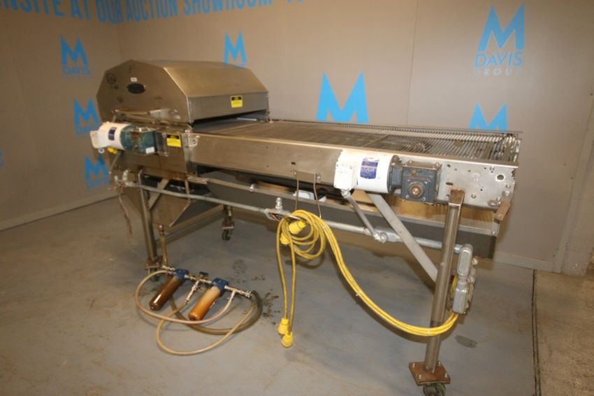 Burford Corp. Oiler, M/N SB-1R, S/N 8825, with (2) Baldor Drives, with S/S Mesh Conveyor, Aprox. 101" L x 30" W, with S/S Enclosed Spray Section, Mounted on Portable S/S Frame (INV#77737)(Located @ the MDG Showroom - Pittsburgh, PA)(Rigging, Loading & Site Management Fee: $100.00 USD)