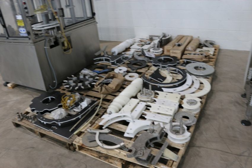 New England Machinery Inc. 3-Head Rotary Capper, M/N NEPMT/TC-2, S/N 7506, with Large Assortment of Change Parts, Including Timing Belts, Rotary Wheels, & Other Spare Parts (INV#68354)(Located at the MDG Auction Showroom 2.0 in Monroeville, PA) (Rigging, Handling & Site Management Fee: $300.00 USD)