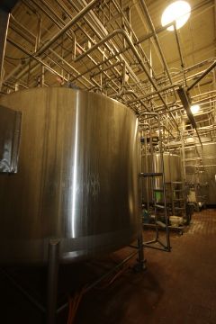 DCI 2,000 Gal. S/S Single Wall Tank, S/N 92-D-44768-B, with Dual CIP Spray Ball, Dome Top/Cone Bottom, Mounted on S/S Frame & Load Cells, with Fairbanks Digital Read Out, with Top Mounted Agitation Motor (NOTE: Does Not Include Platform) (INV#81326)(LOCATED IN CHAMPAIGN, IL)(Handling, Loading & Site Management Fee: $12,500)