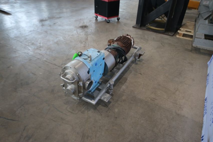 2015 SPX 7.5 hp Positive Displacement Pump, M/N 220U1, S/N 300728 R2-3, with 1760 RPM Motor, 230/460 Volts, 3 Phase, with Aprox. 4" Thread Type Inlet/Outlet, Mounted on S/S Frame (INV#82370) (LOCATED @ MDG AUCTION SHOWROOM 2.0 IN MONROEVILLE, PA)(Handling, Loading & Site Management Fee: $200)