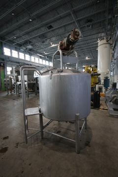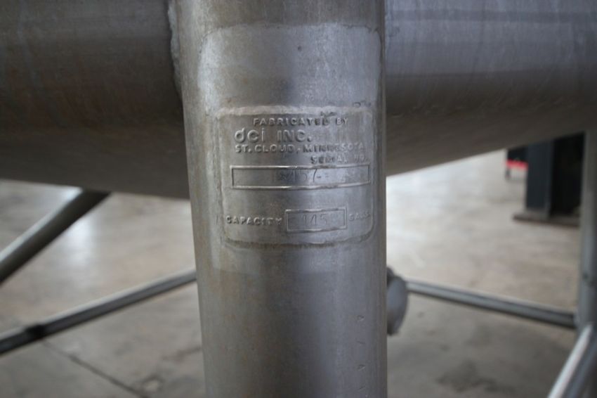 DCI Inc. 445 Gal. Single Wall S/S Tank, S/N JS457, with Bottom S/S Discharge Valve, with Top Mounted Motor, with S/S Agitation, with Dual S/S CIP Spray Ball, with S/S Man Ladder, Mounted on Load Cells (NOTE: No Digital Read Out) (INV#82366) (LOCATED @ MDG AUCTION SHOWROOM 2.0 IN MONROEVILLE, PA)(Handling, Loading & Site Management Fee: $500)