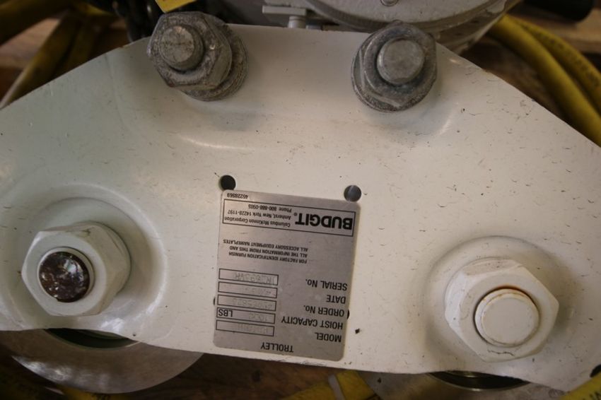 2013 Coffing 1/2 Ton Pneumatic Hoist, with Buget Motor, M/N PUT01H, S/N 45955823, with S/S Trolly Wheels (NOTE: Does Not Include Cross Beam) (INV#82405) (LOCATED @ MDG AUCTION SHOWROOM 2.0 IN MONROEVILLE, PA)(Handling, Loading & Site Management Fee: $100)