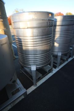 Aprox. 200 Gal. Vertical S/S Single Wall Tank,Internal Tank Dims.: Aprox. 40" Tall x 38" Dia., Mounted on S/S Frame with Fork Pockets, & S/S Lid (INV#80051)(Located @ the MDG Auction Showroom 2.0 in Monroeville, PA)(Handling, Loading & Site Management Fee: $150.00 USD)
