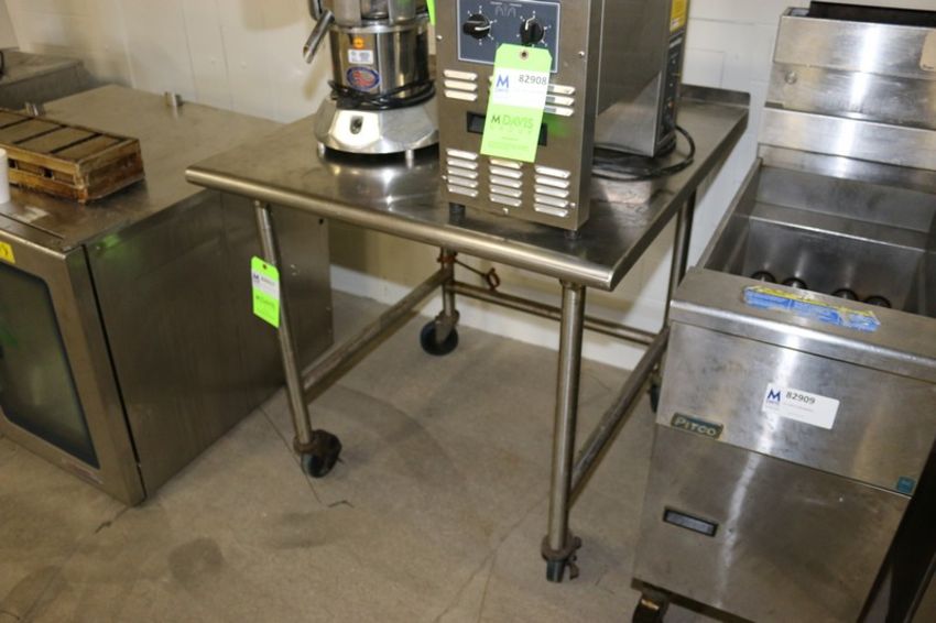 S/S Table, Overall Dims.: Aprox. 36" L x 36" W x 36" H, Mounted on S/S Frame & Casters (INV#82917)(Located @ the MDG Auction Showroom 2.0 in Monroeville, PA)(Handling, Loading & Site Management Fee: $100.00 USD)