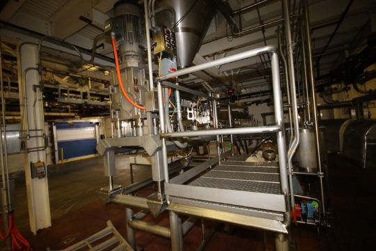 2005 Readco S/S Extruder,Machine 5 Inch C.P., S/N 108530, with Some S/S Spare Parts, Includes (2) S/S Augers, (2) S/S Heads with Portable Cart, with Reliance 30 hp Motor, 230/460 Volts, 3 Phase, with S/S Platform, with S/S Handrails & S/S Grating (NOTE: Missing Some Parts--See Photographs (INV#81341)(Located @ the MDG Auction Showroom 2.0 in Monroeville, PA)(Handling, Loading & Site Management Fee: $1,000.00 USD)