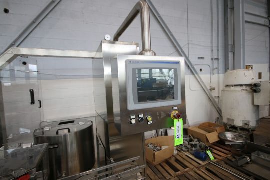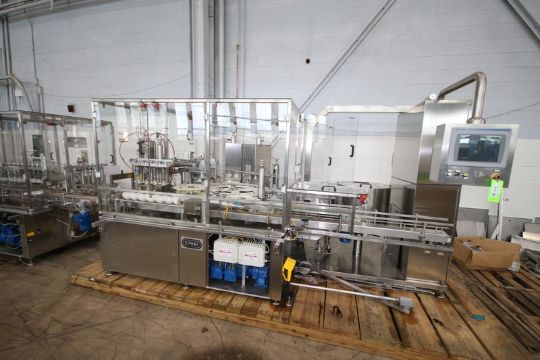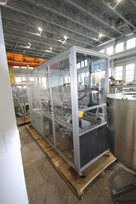 OMAS Fragrance & Perfume Filling, Pump Inserting, Crimping & Labeling Line, Line Consists Of OMAS 8-Head Primary Piston Filler, M/N 60532001, 10 Gal. Supply Tank, (4) Head Second Stage Vacuum Fill Station, Bulk Pump Elevators Feed to Sorter Bowls, Dual Pump Lace Stations & Dual Crimp Stations (Currently Set to 15mm), Dual Station Button Placer with 22" Dia. Bowl Feeders, Worm Screw Star Wheel Container Handling, Allen-Bradley Panel View Plus 1250 Remote Touch Controls, Fill Range: 10 ml to 1000 ml with Change Parts, Capable of Speeds Up to 100 Bottles Per Minute, Robotic Arm Placement of Bottles from Fill Line Onto Labelaire Model311415004X3RH Bottom Labeler with Norwood R1100 Date Coder (INV#84987)(Located @ the MDG Showroom 2.0 in Monroeville, PA)(Handling, Loading & Site Management Fee: $2,000.00 USD)