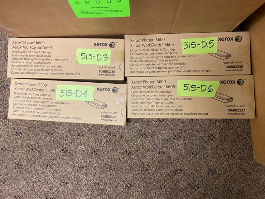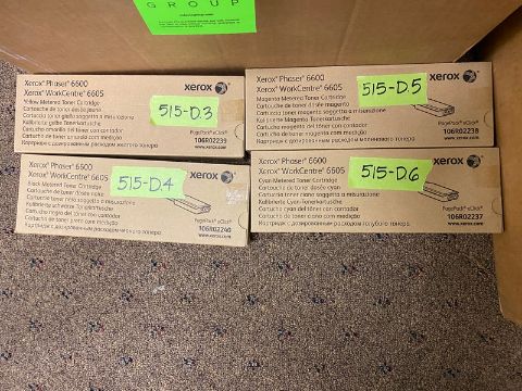 6 NEW IN BOX Miscellaneous Color Laser Printer Cartidges: 1 (one) Black Konica Toner for Konica 7155/7255/7272 Force 65 or Minolta DI-551/650, DI-5510/7210, DI-7272 / Xerox Waste Cartidge for Xerox Phaser 6600/VersalinkC400, Xerox WorkCentre6605/6655/Xerox Versalink / Yellow Toner/Black Toner/Magenta Toner/Cyan Toner all for Xerox Phaser 6600/Work Centre6605 (Located Brunswick, NJ)