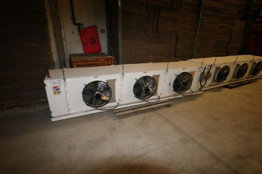 COMPLETE GLYCOL REFRIGERATION SYSTEM: Includes--(1) Genuine Carlyle 125 hp 8-Piston Freon Compressor, M/N 5H80-A219, with Lincoln 1770 RPM Motor, 230/460 Volts, 3 Phase, with Furnas Soft Starter; (1) Genuine Carlyle 125 hp 8-Piston Freon Compressor, M/N 5H80-A219, with Lincoln 1782 RPM Motor, 230/460 Volts, 3 Phase, with Furnas Soft Starter; (1) Genuine Carlyle 125 hp 8-Piston Freon Compressor, M/N 5H80-A219, with Lincoln 1770 RPM Motor, 230/460 Volts, 3 Phase, with Furnas Soft Starter; (1) Vertical Refrigeration Vales Freon Accumulation System, NAT'L BD: #2197, MAWP 50 PSI @ 300 F, -20 F @ 150 PSI; (1) Horizontal RSD Freon Receiver Tank, Previously Received R407F; BAC Evaporator Unit, M/N VLG-225A, S/N 78-8914M, Belt No. 4-B90; (1) 2011 Frick 3-Fan Evaporator, S/N 300/620116.0003, 460 Volts, 3 Phase, Pro. #: 507281 (1) 2011 Frick 3-Fan Evaporator, 460 Volts, 3 Phase (1) 2011 Frick 3-Fan Evaporator, 460 Volts, 3 Phase, (Handling, Loading, & Site Management Fee: TBA USD) (LOCATED IN STOCKTON, CA)
