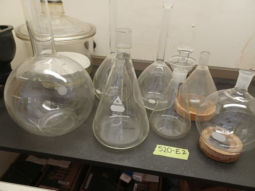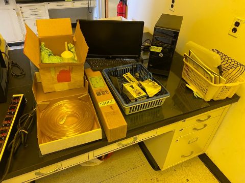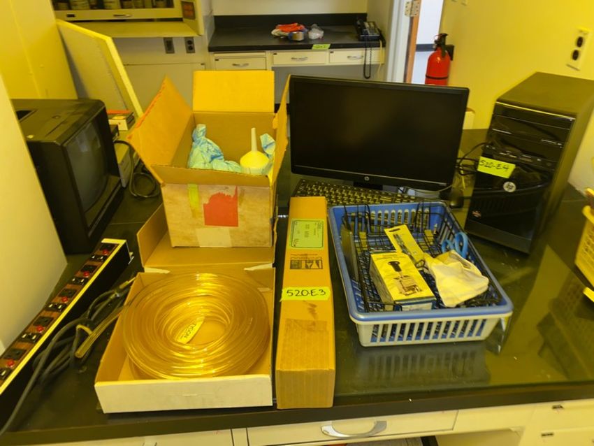 10 Boxes Lab Accessories + Lab Glassware 1000 ml - 2000 ml items + PC & Accessories: Tygon tubing Buchner + ceramic funnels + desicator vacuum jar + boiling flasks + other flasks +HP computer, monitor, keyboard, mouse, etc (Elevator Handling Fee $40) (Located New Brunswick, NJ)