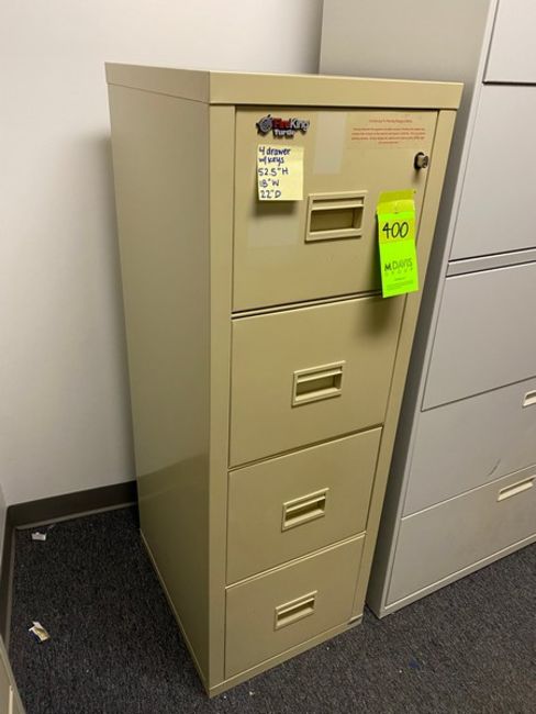 One (1) Fire King 4 drawer fireproof file cabinet with key, 18"Wx22"Dx52"H (Elevator Handling Fee $30) (Located New Brunswick, NJ)