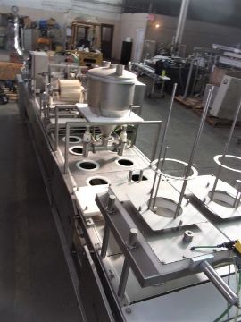 PMR (Packaging Machinery Resources) Dual Lane Continuous Container Filler, Sealer, Lidder, Model 1300, S/N 20070207, with All S/N Sanitary System, 440 Volt, Allen Bradley Micrologic Controller, Allen Bradley PowerFlex Speed Controller, Allen Bradley Panelview 300 Control Pad, Unit is on Casters, System is rated at Aprox. 30 Containers Per Minute, Current Container Diameter is Aprox. 6", -- This System Denests the Containers, Fills the Containers, Puts a Protective Seal on the Container and then Lids. (NOTE: This System will need to Ship Via Flatbed so please inquire for shipping costs) (Located Hortonville, WI)