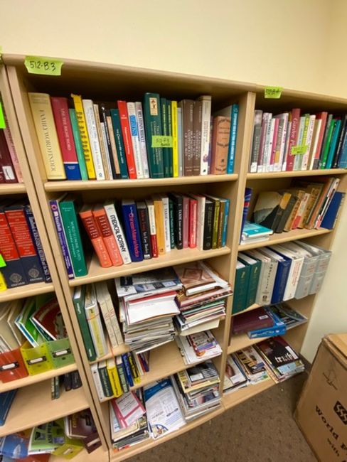 4 matching light-colored wooden bookshelves measuring 29.5"Wx12"Dx73"H (Elevator Handling Fee $30) (Located New Brunswick, NJ)