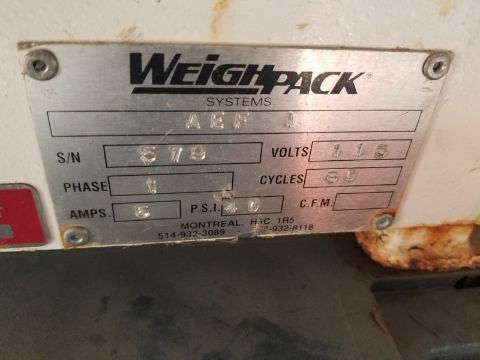 Weight pack AEFI Weighing system, serial # 679, ( serial # 675 for parts ), volt 115, 40 PSI (Loading Fee $100) (Located Fort Worth, TX)