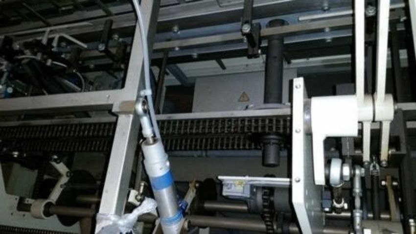 Harro Hofliger (Hoefliger) model BK 40 Intermittent motion auto load horizontal glue cartoner. 5" high carton pushers on 9" centers with adjustable leading lug. 8" wide product in-feed conveyor stacks product, blisters, pouches etc. into adjustable collection hopper which drops product into adjustable product bucket. 24 buckets are 12" long and 5" high, currently set to 5" wide. A single pusher loads the product, which could be a single bottle or tube, into the opened carton. The adjustable carton feed hopper is currently set for a 10" x 7.5" flat carton, with a maximum adjustment to approx. 16" x 11.5" flat. 2 suction cup arms, with room for up to 6 suction cups, pull the cartons, past a carton break device and into the carton flights. Flight chains are adjustable from approx. 4"-11" across the machine. Machine has clear interlocking doors that slide, pull open or a large gull wing door opens over the carton gluing section for full access. This machine features a swing around over head control panel, a remote jog control for set up and change over and 2 E-Stop buttons. 2 Nordson 2 module guns and hoses are mounted to the machine which comes complete with a tested Nordson 3400-3500 series glue tank. This Unit Weighs about 3200 Lbs. Overall Dimensions: 183" x 53" x 80" (with Controls Arm) (handling fee $350 with some forklift assistance to load most trucks) (Located New Brunswick, NJ)