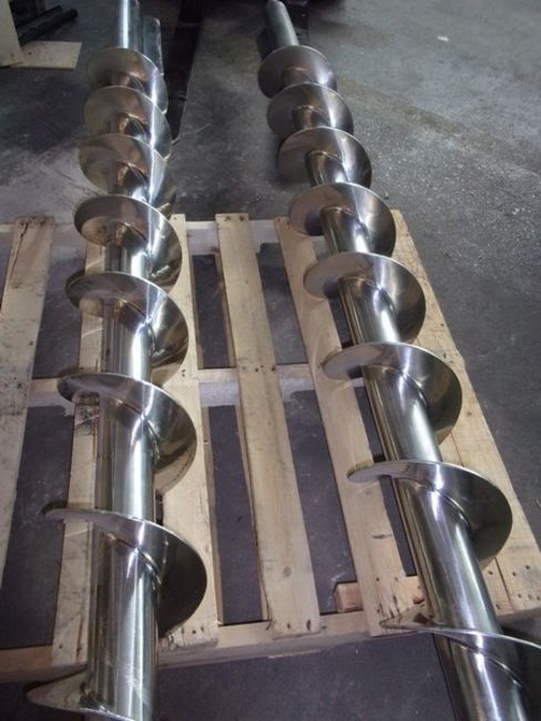 (3) 9" Dia. S/S Screw Augers x 115" Overall, Screw Part is 84" L, 3-1/2" Dia. Shaft, 9" Between Flights,- (1) Has a bent flight shownin the Photo - It does not affect the unit. Last used in a screw loader - Will Crate for $300 to Ship Common Carrier (Loading Fee $100) (Located Hortonville, WI)