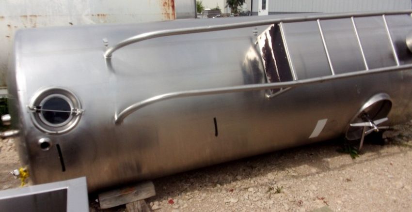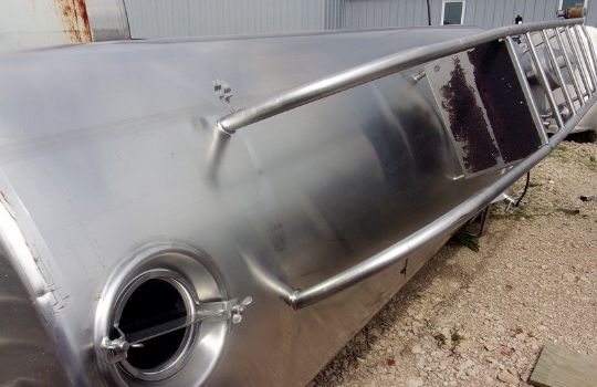 DCI 1,000 Gal. S/S Insulated Vertical Agitated Silo, Unit has Side Bottom Agitation, Unit Measures 53" Dia. x 144" H, Overall Height with Legsis 14 ft., Side Bottom Manway, Ladder with Top Sightglass, This vessel was last used in the dairy industry and remains in excellent condition, Unit will Need to Ship Via Flatbed (Loading Fee $500) (Located Hortonville, WI)
