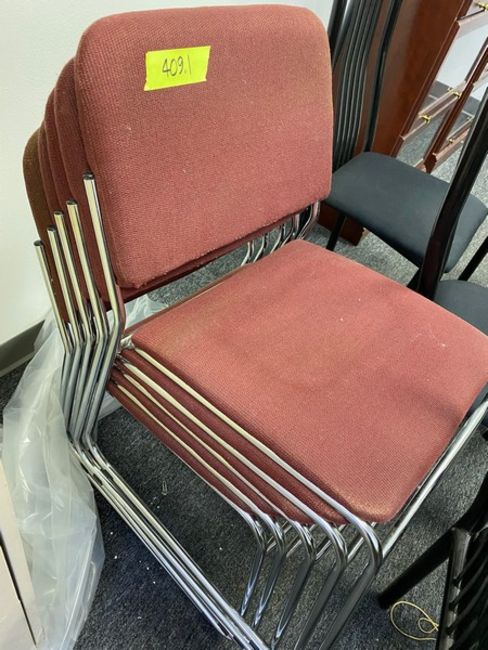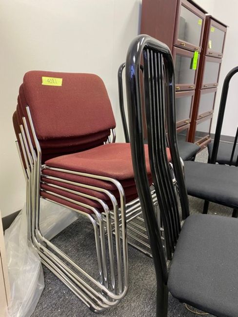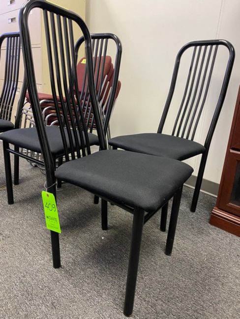 9 Chairs: 4 Black Table chairs and 5 Stackable Chairs (Elevator Handling Fee $20) (Located New Brunswick, NJ)