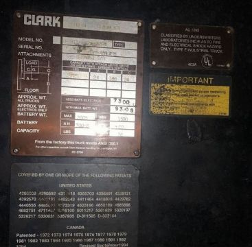 Clark Stand Up Forklift Truck Battery Operated -No Battery (Rigging and loading fees included in the selling price).