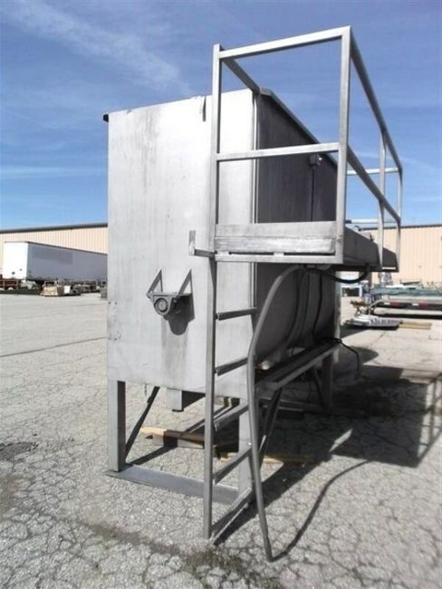 200 CU FT Stainless Steel Liquids/Powder Paddle/Ribbon Blender, (111 cu ft capacity to top of agitator arm, Trough measures: 48"W x 96"L x 80" deep overall, Agitator is 46" dia with 3-1/2" wide blades x 3/8" thick, Single shaft, No mfg tag, 3 inch end bottom drain; 21-1/2 clear to ground, 2 hp SEW Eurodrive, 1720 rpm, Gearbox tag info: 1720 7.4 232.29 109.2, Unit has counterbalanced lid, Lid has (3) 3 inch inlets and (1) 2 inch inlet, OADS: 77"W x 120"L x 108"H (add 30" to height if lid installed), Unit last used in the food industry, Used in excellent working condition, Blender will need to ship via flatbed (Loading Fee $1,000) (Located Hortonville, WI)