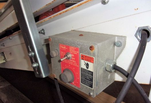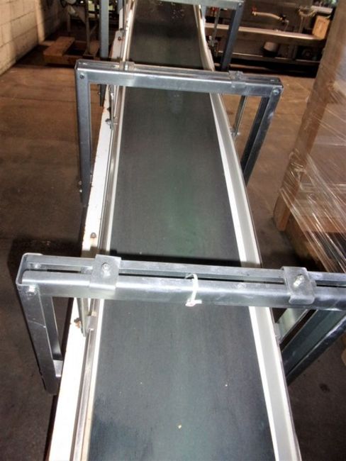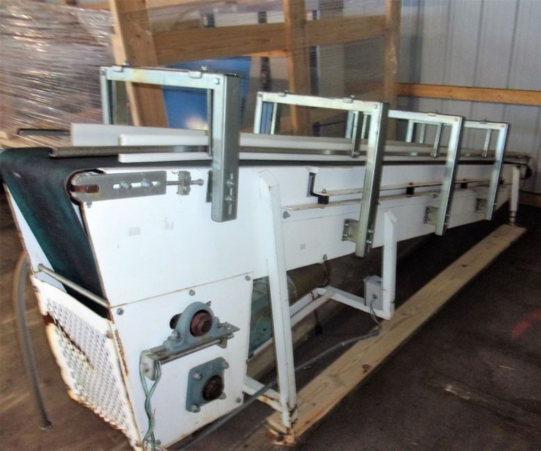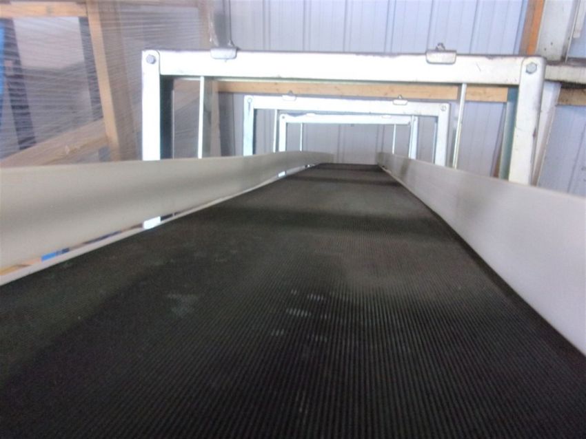 Nercon Incline Belt Conveyor, Aprox. 12 Inch Wide X 123 Inches Long, Infeed Height is 15 Inches, Discharge Height is 46 Inches, 2 1/4 Inch Adjustable Siderails, Infeed and Discharge Height Adjustable with Adjustable Footpads, 1 HP Baldor Drive with Tigear Gearbox 3/60/230/460 Volt, Vibco Adjustable Speed Controller, Last Used in Food Industry as a Box Conveyor, Will crate for 300 dollars to ship common carrier (Loading fee $100) (Located Hortonville, WI)