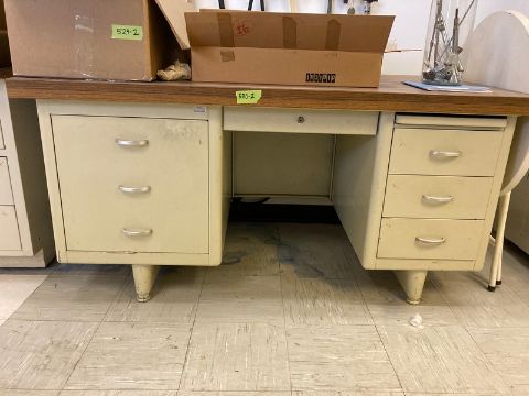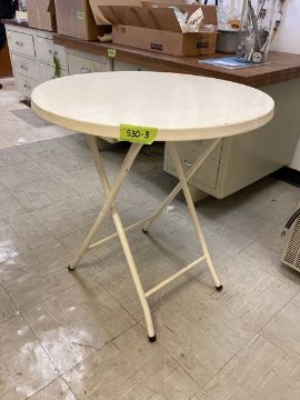 Lab Desks and Cabinets & Folding Table - cabinet with formica top 50"WX24"D / desk 52"Lx32"W with formica top / metal folding table 27" diameter (Located $30) (Located New Brunswick, NJ)