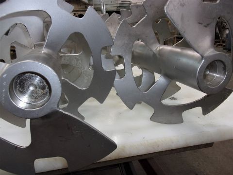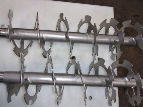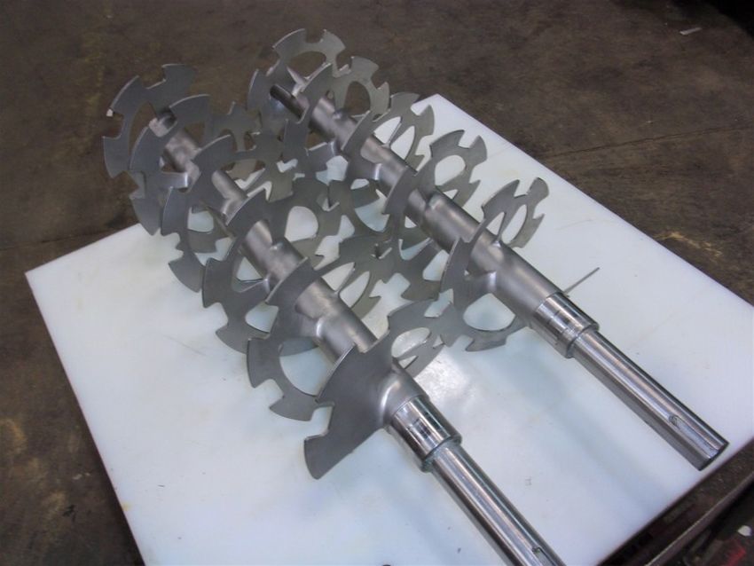 (2) S/S Sanitary Double Ribbon Blender Agitators, Each Unit Measures 9-1/2" Dia., Each Unit Measures 27-1/2" L (This is the blending distance of the augers), Overall Length of both units is 37-1/2" L , 1-5/8" Dia. Solid S/S Shaft, Thse S/S Ribbon Blender Agitators were removed from a Cheese Processing Facility, Will Crate Both Agitators for $200 to Ship Common Carrier - No Loading Fee (Located Hortonville, WI)