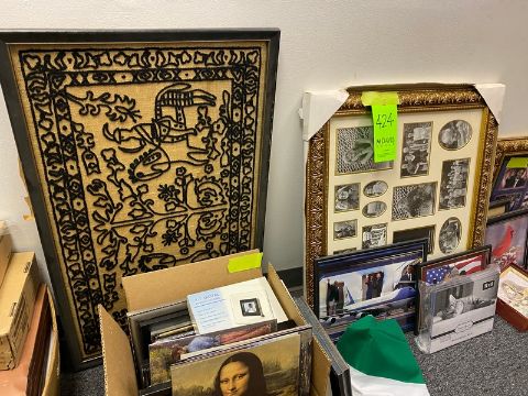 30 + total various pictures / frames & handmade artwork - Presidential framed pieces - Obama / misc African & Indian art / misc frames (Elevator Handling Fee $10) (Located New Brunswick, NJ)