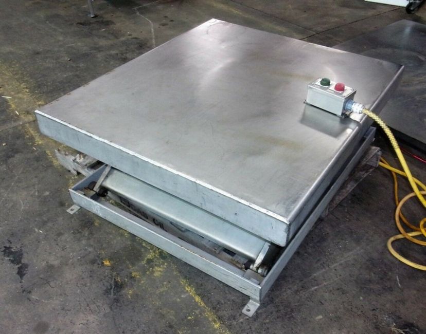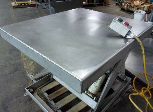 Apache S/S 4,000 lb. Pallet Lift Table, Model EZ4000, Platform Measures 40" W x 45" L, 110 V with Controls, Fully Extended Height 36", All S/S Used in Food Plant -- Have Video of Unit Under Power Upon Requiest, Will Crate for $300 to Ship Common Carrier (Located Hortonville, WI)