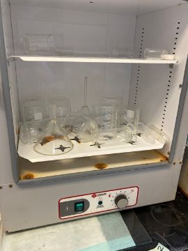 2 Lab items and Glassware: Explosion-Proof Refrigerator - Lab-Line Instruments 3557, 24"Wx24"Dx34.5"H - tested -working PLUS Thomas scientific Lab Oven Model TSINC2 with glassware 21"Wx16"Dx25"H - tested working (elevator handling fee $20.00) (location New Brunswick NJ USA)