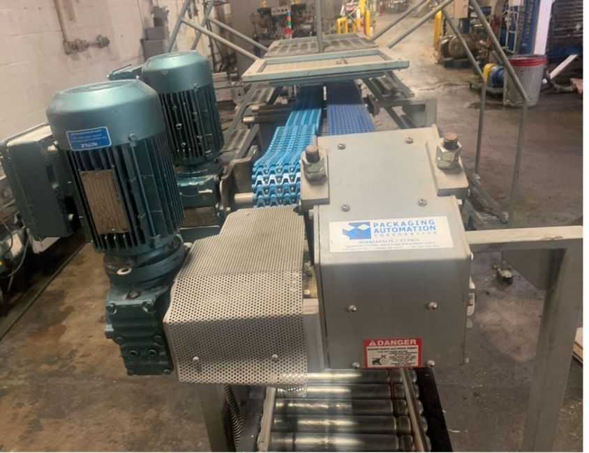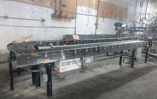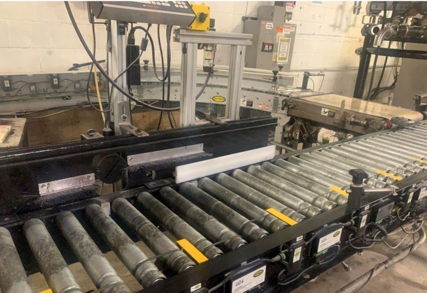 Semi-Automatic Pail Filling Line consisting of energy efficient intelligen roller converyor (no pail no movement); three head air operated fill heads for three different products, scale programmed for 35-lb net, Injet Coader, Lid Closer, 25 feed infeed and 30 feed outfeed conveyors. (LOCATED IN IOWA, RIGGING INCLUDED WITH SALE PRICE) -- Optional Palletizing Fee $475.00***EUSA***