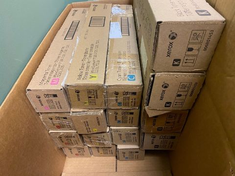 17 NEW IN BOX Xerox Toner Cartidges for Xerox Work Centre 7120/7125/7220/7225/7220i/7225i: 4 BLACK, 4 YELLOW, 4 CYAN, 4 MAGENTA. 1 Toner Waste Cartridge (Located Bruswick, NJ)
