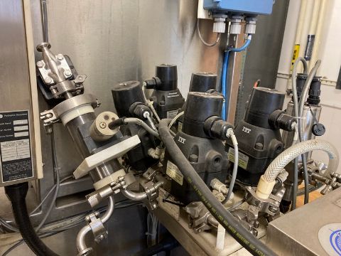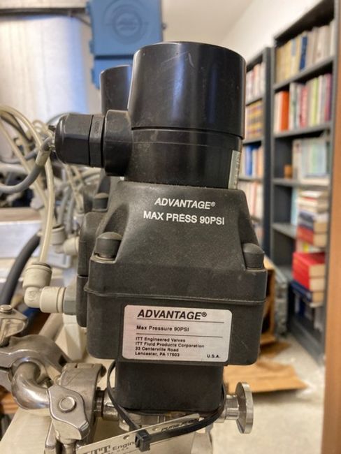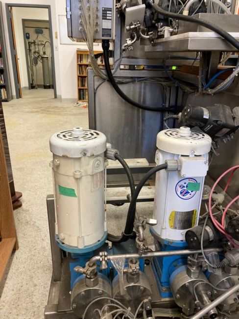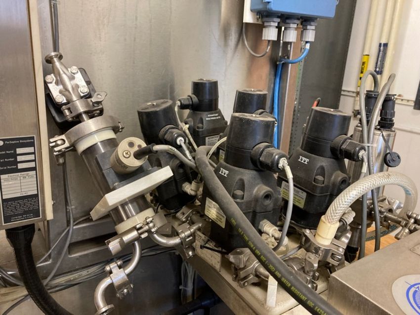 Perseptive BioSystems (MIT) Processing Skid on SS cart with castors / 2 Baldor Motors w/ Speed seco Controls+ / 13 Itt Advantage valves. (Elevator Handling Fee $30) (Location New Brunswick, NJ)