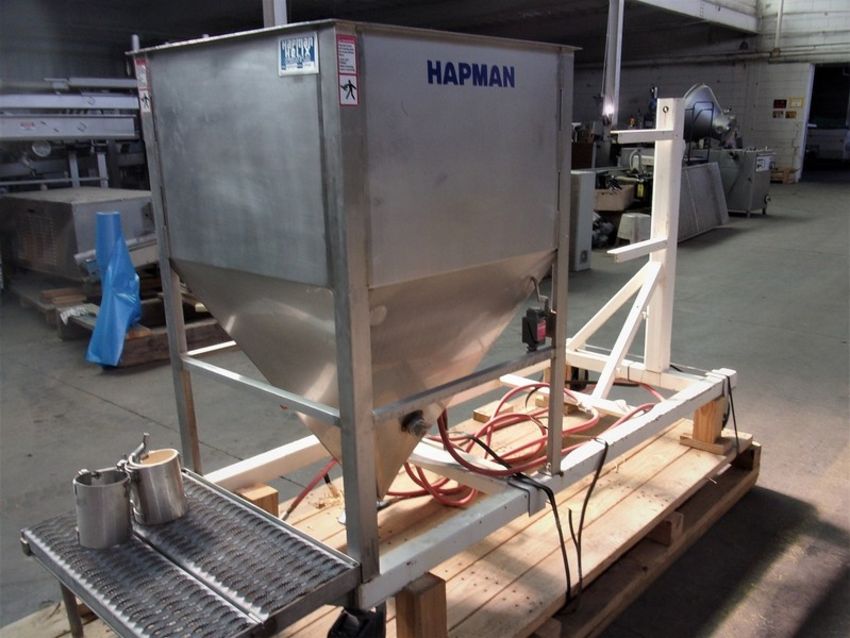 Hapman Helix S/S Hopper Conveyor Frame, Model 300 SS, S/N X11235 AA, Overall Dimensionsof the frame are 96" L x 31" W x 57" H - Overall Height was measured to the top of the Hopper, Hopper Dimensions 32" x 32"x 50" Deep, Unit is Portable on Casters, S/S Safety Grate with Shut-Off Mechanism System Currently Requires 2-1/2 or 2-3/4" Dia. Auger, Unit Comes with a Couple Pipe Clamps and Bottom End Cap (NOTE: This sytem was last used in the food industry. You will receive exactly what you see. This is not a complete system and is missing parts (Auger) etc. This System will require a drive motor, auger and tube) Will Crate System for $300, (Loading Fee $100) (Located Hortonville, WI)