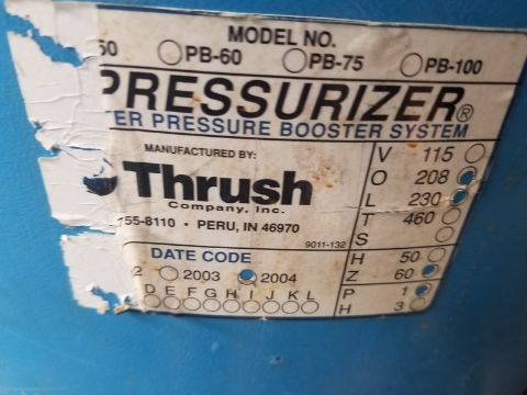 Thrush PB-50 pressurized water booster system, volt 208/230, 1-phase, 1 1/2 HR pump (Loading Fee $50) (Located Fort Worth, TX)