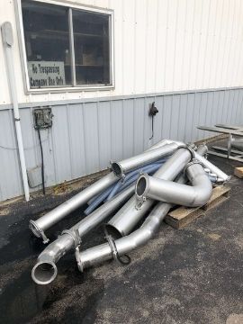 Dust Collector with (2) Single Shell Tanks - Tank #1 - 6-1/2" Outlet, (2) Inlets - 5-1/2" and 8-1/2", Overall Dimensions Aprox. 28" W x 110" H; Tank #2 - Control Box, Removable Cover, Side Door, Air Cylinder with Gauge, (2) 8-1/2" Inlets, (1) 6-1/2" Outlet, 12-Dust Collector Bags - 50" L x 8-1/2" W, Thermometer / Pressure Gauge, Overall Dimensions Aprox. 71" W x 113" H, (3) 9" Tubes, (3) 6" Tubes, 1 Tube has 5 - 2" Hoses (Unit #3272) (Shipping Fee $500) (Located Pulaski, WI)