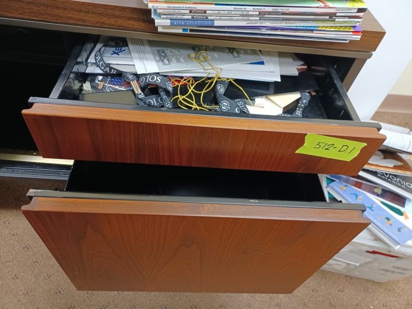 6 unit miscellaneous office furniture/items: 1 credenza 67"W x 21.5"Dx28.5"H / 1 TV stand 60"Wx20.5"Dx29.5"H / 1 (one) bookshelf 30"Wx11"Dx73"H / 1 large decorative clock / 1 large bulletin board / Sony TV (Elevator Handling Fee $40) (Located New Brunswick, NJ)