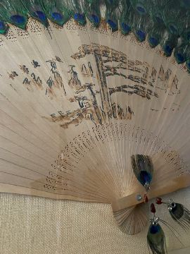 Oriental Peacock Fan Framed Art. 82"W x 4.5"D x 48" H (Elevator Handling Fee $20) (Located New Brunswick, NJ)