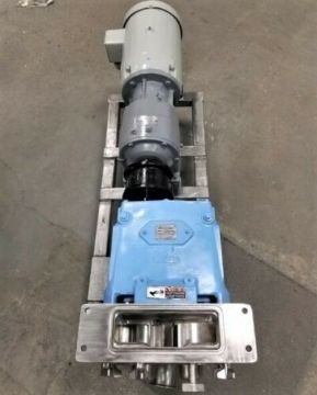Waukesha SPX Model 134 Stainless Steel Sanitary Positive Displacement Pump, Serial # 300918 02 with Baldor 7 1/2 HP 208/230/460 Volt 1725 RPM, Mounted on a stainless steel frame with adjustable legs, 10 to 1 Dodge Gear Reducer, Rectangular inlet 4 1/2 inches X 15 1/4 inches, 3 1/2 Inch tri clamp outlet, Pump was just Reconditioned - Unit last used in the dairy industry, Crating fee of 250 dollars will apply to ship common carrier (Loading Fee $50) (Located Hortonville, WI)