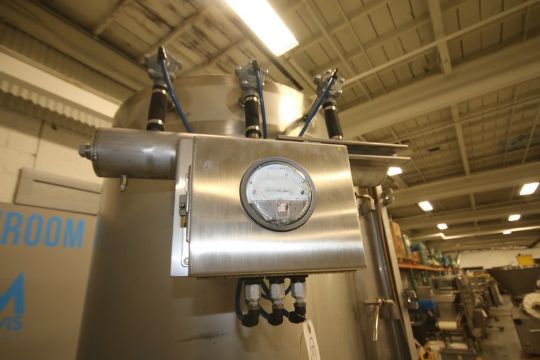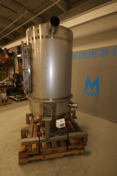 Automated Ingredient Systems Aprox. 82" H x 3' W Cone Bottom S/S Dust Collector, with (6) Cartridges, Hinged Front Door, 4" & 5" Side Connections, 12" Flanged Bottom, Bindicator, Magnehelic Gauge, Mounted on S/S Frame, (Aprox. Overall Dim. 82" H x 5' W)(INV#80971)(Located @ the MDG Auction Showroom in Pgh., PA)(Handling, Loading & Site Management Fee: $150.00)