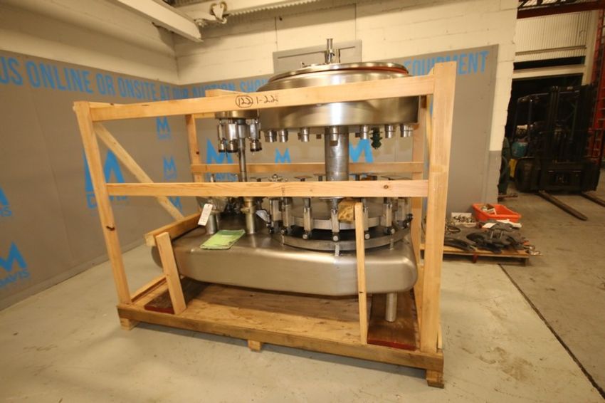Filler Specialties 18-Valve Mono Block S/S Gravity Filler, SN 1767G185SS1GE, with (5) Head Screw Capper, Includes Gallon HDPE Change Parts with Spare Capper Parts & Manual, (Note: Missing Valves, Rubbers & Float Assembly) (INV#83374)(Located @ the MDG Auction Showroom in Pittsburgh, PA)(Handling, Loading & Site Management Fee: $300.00)