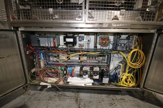 Zepf Technologiges S/S Conveyor Diverter, with Aprox. 17-1/2" W Interlock Belt, with S/S Control Panel with Allen-Bradley 7-Slot PLC, with (3) Allen-Bradley VFDs, Mounted on S/S Frame (INV#70592) (Located at the MDG Auction Showroom in Pgh., PA) (Rigging, Handling & Site Management Fee: $250.00)
