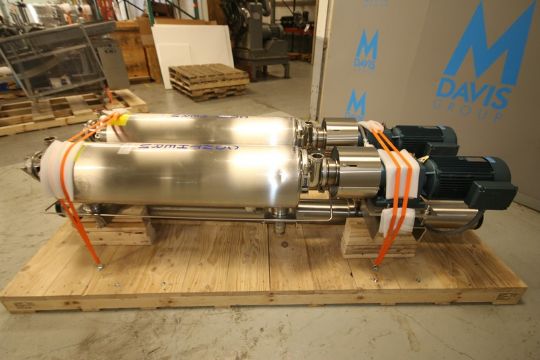 Alpha Laval Contherm Dual Scrape Surface Heat Exchangers, Model 6x6, SN HC989555CN, HC 9948SCN, Max Working Allowable Pressure 300 psi @ 338° F, with 2"CT Fittings, SEW Drive Motors, 7.2 hp/300-1800 rpm, 230/460V, Aprox. Skid Dimensions 112" L x 42" W x 36" H (INV#87219)(Located @ the MDG Auction Showroom in Pgh., PA)(Skidding, Handling, Loading & Site Management Fee: $1,500)