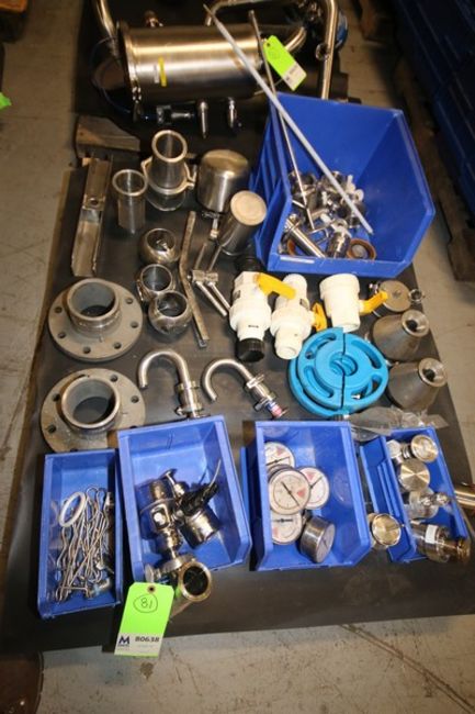Pallet of Assorted S/S Fittings, Gauges, Sensors, Tank Part, Filler Heads, Pressure Relieving Valves, etc. (INV#80638)(Located @ the MDG Auction Showroom in Pgh., PA)(Handling, Loading & Site Management Fee: $50)