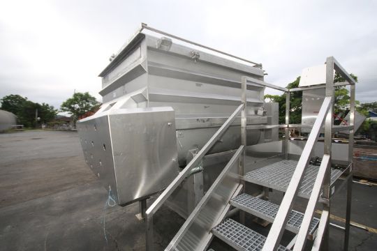 Custom Stainless Equipment Company, Aprox. 6" L x 56" W x 47" D, Jacketed S/S Paddle Blender, with Safety Guards, with Control Box, Pneumatic Bottom Side Door, Aprox Overall Dims. 9' L x 7' W x 8' H, Dual 25 hp/1770 rpm Drive Motors, 230/460V 3 Phase (INV#88572)(Located @ the MDG Auction Showroom in Pgh., PA)(Handling, Loading & Site Management Fee: $500)
