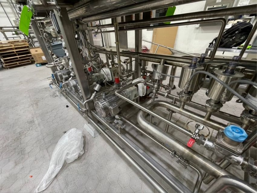 TRIPLE FRUIT SKID, OPERATED WITH 6400 FILLER LOT 40, INCLUDES (3) FRISTAM 1.5/1-HP PD PUMPS, MODEL FKL25A, VALVES, FLOW METER, ETC (YOG44)(INV#84328)(Located @ the MDG Auction Showroom 2.0 in Monroeville, PA) (Handling, Loading & Site Management Fee: $350.00 USD)
