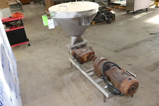 WCB 5 hp Positive Displacement Pump,M/N 134, S/N 274351 00, with 1745 RPM Motor, 208-230/460 Volts, 3 Phase, with S/S Infeed Funnel, Mounted on S/S Frame (KHOL648) (INV#81329)(Located @ the MDG Auction Showroom 2.0 in Monroeville, PA)(Handling, Loading & Site Management Fee: $300 USD)