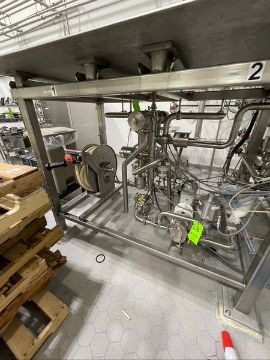 DOUBLE FRUIT SKID, OPERATED WITH OSGOOD ROTARY FILLER LOT 25, INCLUDES FRISTAM 15-HP PD PUMP, MODEL FKL15A1400980, GEA PROMASS 83 FLOW METER, MAGNETIC SEPARATOR, ADDITIONAL VALVES, INCLUDES PIG LAUNCHING STATION (YOG28)(INV#84318)(Located @ the MDG Auction Showroom 2.0 in Monroeville, PA) (Handling, Loading & Site Management Fee: $350.00 USD)